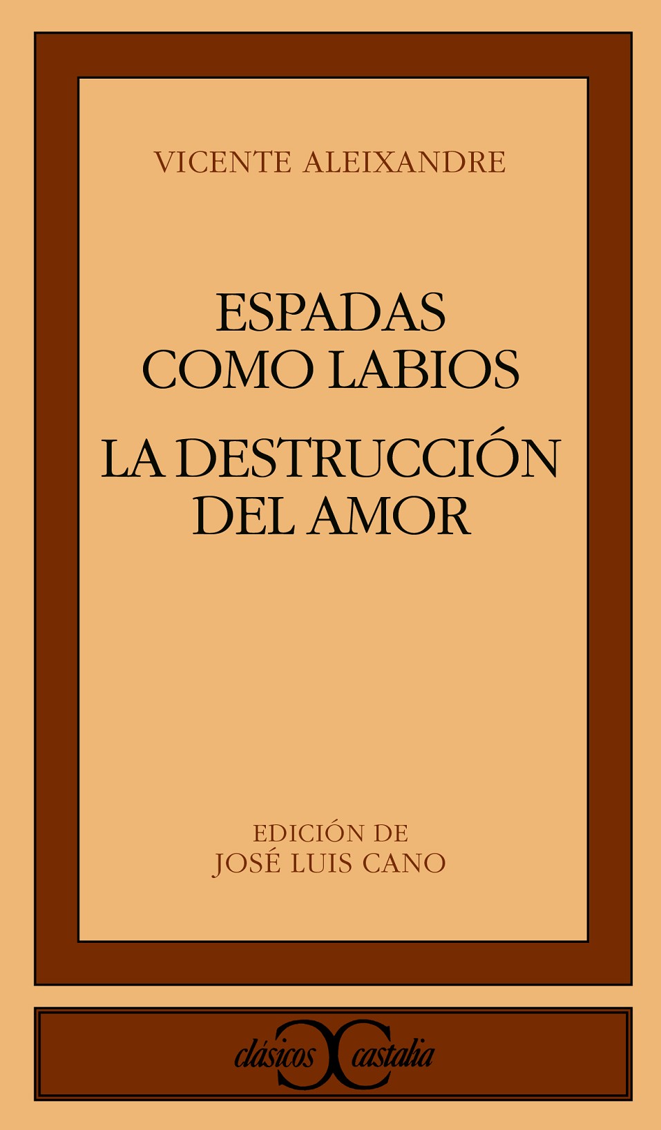 ESPADAS COMO LABIOS, tercer libro de Aleixandre, aúna en sus páginas los temas eternos de la poesía: la vida, el amor, la muerte. No se trata de poesía pura, fría, aséptica, sino de poesía cálidamente humana. LA DESTRUCCIÓN O EL AMOR es no sólo el libro que reveló la poderosa personalidad de Vicente Aleixandre como poeta, al tiempo que le situó entre los de mayor fuerza y originalidad, sino que es una de sus obras más fértiles y que más influencia ha ejercido en poetas de las generaciones posteriores.