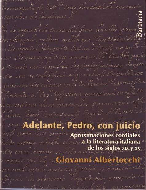 Alessandro Manzoni, Italo Svevo, Claudio Magris y Giuseppe Tomasi di Lampedusa son los autores de los que habla este libro. Autores canónicos en la tradición literaria italiana, que superaron las fronteras nacionales para entrar a formar parte del imaginario europeo. Todos ellos han aportado a la literatura cualidades universales, reversibles, que los hacen actuales en cualquier lugar. Alessandro Manzoni es en España, por decirlo así, alguien de la casa, por haber ambientado su novela, Los novios, en la Lombardía que formaba parte de la corona española; pero además por haberse servido de expresiones en lengua española, que han acabado siendo proverbiales, como ese «Adelante, Pedro, con juicio» que da título a este libro, para caracterizar uno de los episodios más famosos de la novela. En un mundo dominado por la imagen, que impone su reinado sobre nuestra fantasía, Manzoni es un perenne testimonio de la importancia ética de la palabra, que debería servir para denunciar la injusticia.