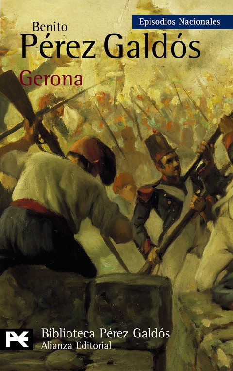 El gran friso narrativo de los Episodios Nacionales sirvió de vehículo a Benito Pérez Galdós (1843-1920) para recrear en él, novelescamente engarzada, la totalidad de la compleja vida de los españoles guerras, política, vida cotidiana, reacciones populares a lo largo del agitado siglo xix. En GERONA, si bien la peripecia de Gabriel de Araceli prosigue en la medida indispensable para tender un puente narrativo entre el episodio anterior, «Zaragoza» (BA 0306), y el siguiente, «Cádiz» (BA 0308), el grueso del relato aborda otra gesta de sufrimiento y heroísmo, perfectamente entreverada con un argumento en el que no faltan el amor, el odio, la nota costumbrista o cómica, sobre el fondo de la colectiva resistencia gerundense frente al asedio de las tropas francesas.