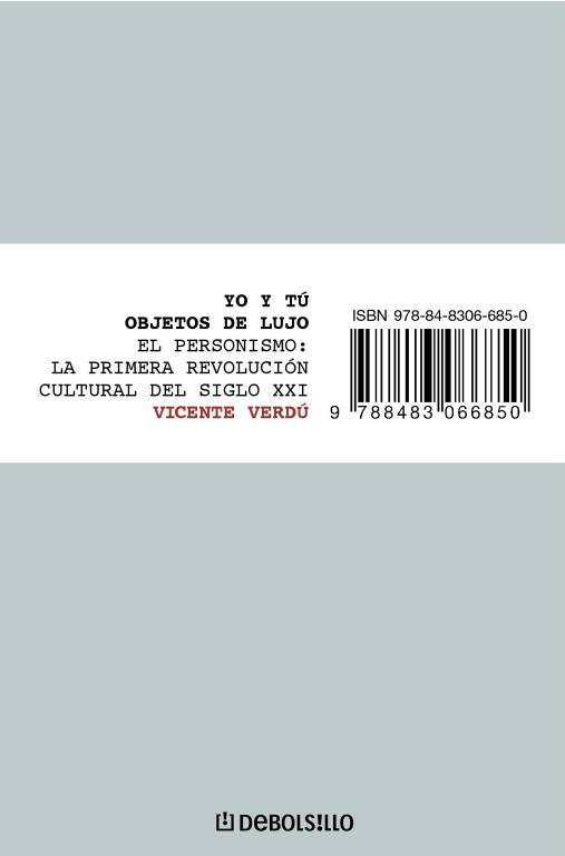Yo y tú, objetos de lujo, es el libro que revela esta mutación en marcha, describe el cambio de modo de vida y la apoya a partir de los múltiples indicios que desde diferentes campos del saber están anunciando este giro hacia un mundo más moral de lo que suele creerse y más, decididamente, interesado por lo humano de lo que propaga el entretenimiento oficial.