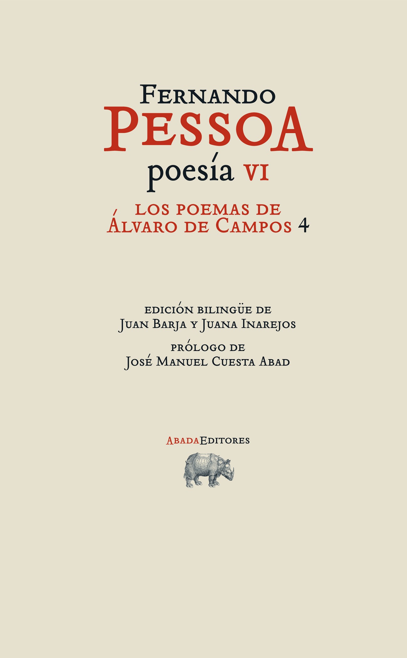 Tras los dos primeros libros de Alberto Caeiro, éste el cuarto del heterónimo Álvaro de Campos, que representa el volumen VI de la obra poética de Fernando Pessoa que viene publicando ABADA Editores en edición bilingüe y anotada.