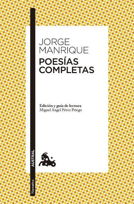 Miembro de una de las más poderosas familias de la nobleza castellana, Jorge Manrique es un poeta típico del "Cancionero General." Por ello, sus obras se ajustan a los distintos géneros en que éste distribuye su materia: obras de amores, canciones, invenciones, motes, preguntas y respuestas, obras de burlas. Pero Manrique debe su fama a una obra bien conocida, las Coplas sobre la muerte de su padre, que representa una cima de la poesía castellana y aun de la universal. Las Coplas son un milagro de arte logrado sobre una base de sencillez: nada tienen, aparentemente, de original ni en el fondo ni en la forma; pero su autor supo actualizar y materializar el pasado, recreándolo como experiencia viva. Edición de Miguel Ángel Pérez Priego.