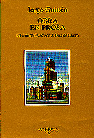 Clásico del siglo XX y una de las voces más rigurosas de la generación del 27, Jorge Guillén no sólo nos ha dejado una obra poética excepcional, recogida bajo el título genérico de Aire nuestro, sino una de las prosas más elegantes e incisivas, precisas y refinadas de su tiempo. En efecto, pocos lectores saben que es autor de una considerable obra crítica, que trazó semblanzas e indagó en la literatura y el arte en general con una maestría que los años han convertido en ejemplar. Con el propósito de recuperar y reunir sus textos en prosa, en su gran mayoría mal conocidos o de dificil acceso, el catedrático de literatura española de la Universidad de las Islas Baleares Francisco Díaz de Castro los ha agrupado bajo seis epígrafes que, en realidad, definen las cuestiones que han preocupado a Guillén a lo largo de su trayectoria literaria: a los dos volúmenes que se publicaron en vida del autor, Hacia «Cántico» y Lenguaje y poesía, siguen «Otros estudios literarios», Contemporáneos», «Semblazas y testimonios. Varia» y «Autoexégesis y poéticas».Todos ellos iluminan con magistral agudeza no sólo el alcance de la palabra poética, sino los temas preferidos de su propia y monumental obra poética.