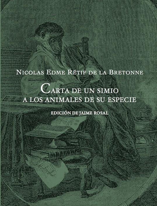 Carta de un simio a los animales de su especie es una curiosa muestra epistolar que Rétif incluye como apéndice al final de su Descubrimiento austral de un hombre volador o El Dédalo francés, novela muy filosófica, monumental libro de viajes fantásticos con ribetes utopistas y seudocientíficos aparecido en 1781 y que en su día suscitó no pocas controversias.