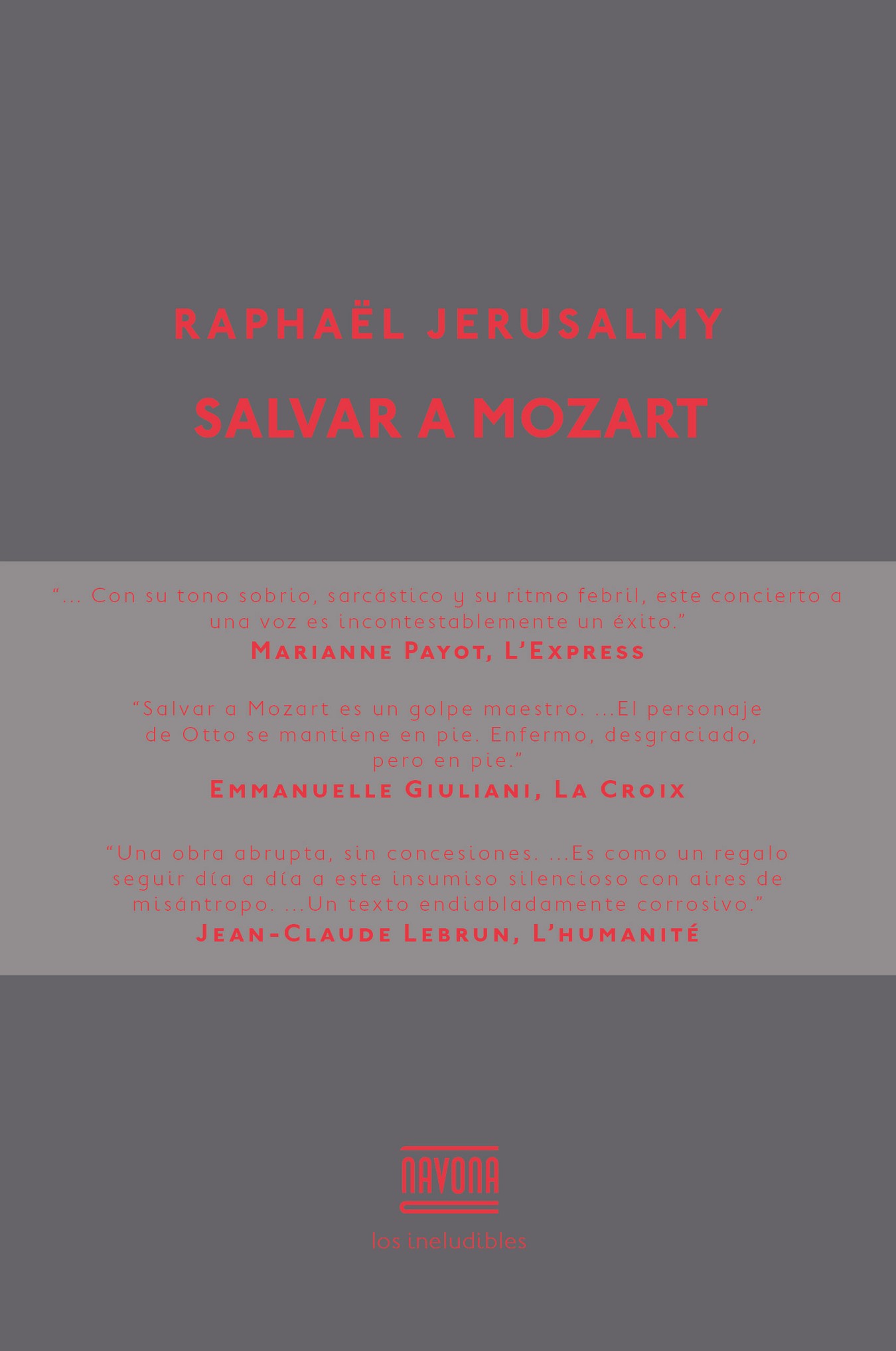 libros (Navona, 2014). Salvar a Mozart ha recibido el premio Emmanuel-Roblès.