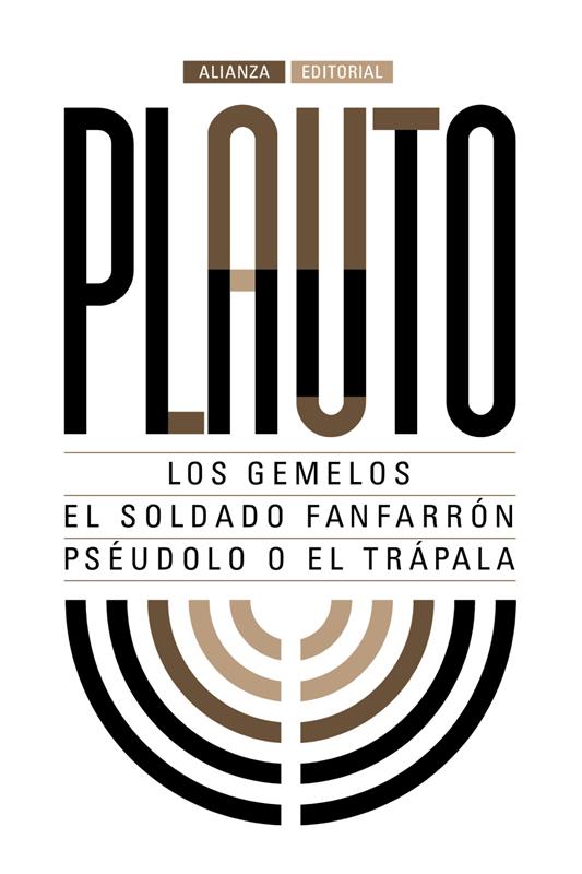 De los escritores latinos, el comediógrafo Plauto (ca. 254-184 a.C.) es el más antiguo cuya obra completa se nos ha conservado. El presente volumen reúne tres de sus comedias más afortunadas y con mayor repercusión en épocas posteriores. En ?Los gemelos? se desarrollan magistralmente los enredos y confusiones a que da lugar el tema de la identidad de dos personajes. ?El soldado fanfarrón? (Miles Gloriosus) destaca por el insuperable tratamiento teatral del protagonista, el engreído soldado Pirgopolinices. ?Pséudolo? o ?El trápala?, posiblemente la mejor obra del autor, trata el tema de la separación y reencuentro de dos enamorados gracias a la intervención de un astuto esclavo, verdadero héroe de la obra.
