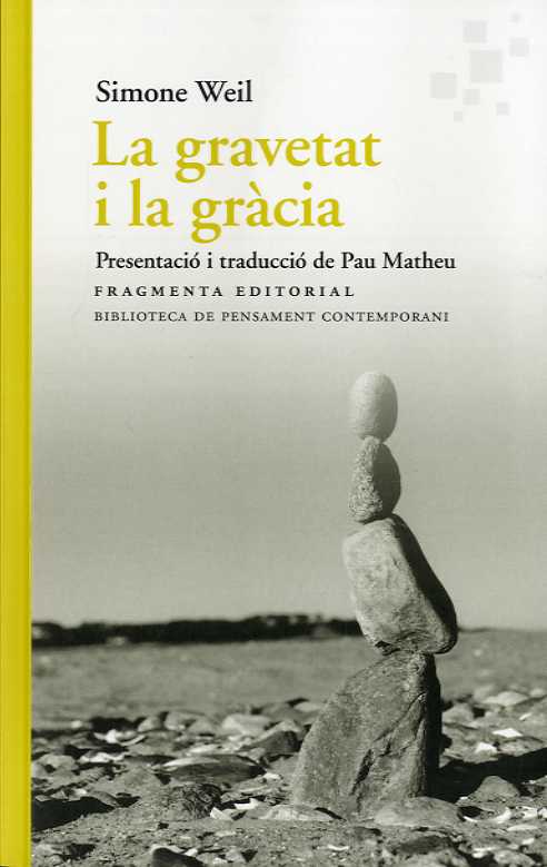 Com ens escapem d'això que, en nosaltres, s'assembla a la gravetat?» Únicament per la gràcia. La gravetat és la llei de la creació, el treball de la gràcia consisteix a «descrear-nos». Se'ns obre, amb la lectura d'aquesta obra, un itinerari de «llum per l'esperit i aliment per l'ànima» que s'inicia a través de la incisió en una batzegada religiosa que escapa dels límits dogmàtics i s'enfronta a una realitat dolorosa.