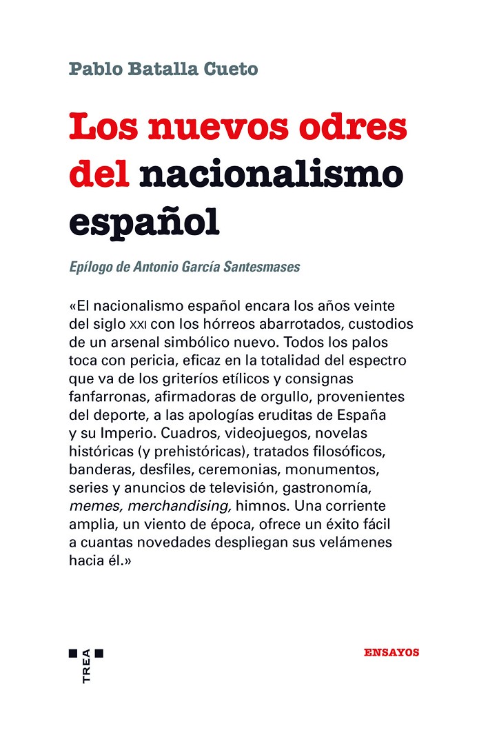 inventariar un conjunto variopinto de manifestaciones culturales de la ideanacionalista española, que incluye las citadas y otras de apariencia más banal, pero no menos eficaces como herramientas de construcción nacional, como los anuncios televisivos de la chacinera Campofrío, las tiendas de merchandising de los Tercios de Flandes, el auge de la recreación histórica o teleseries como El Ministerio del Tiempo o Isabel. Se pasa revista asimismo a la explosión de ventas de la enseña rojigualda, la proliferación de juras de bandera o la celebración de rituales de afirmación patriótica en la plaza de Colón de Madrid. Y todo ello se entrevera de largos apuntes comparativos y contextualizadores sobre otros nacionalismos del mundo y de la propia España y otros momentos de la historia del nacionalismo español, con la ambición máxima de constituir, en conjunto, un libro sobre el fenómeno nacionalista y la construcción nacional en general.