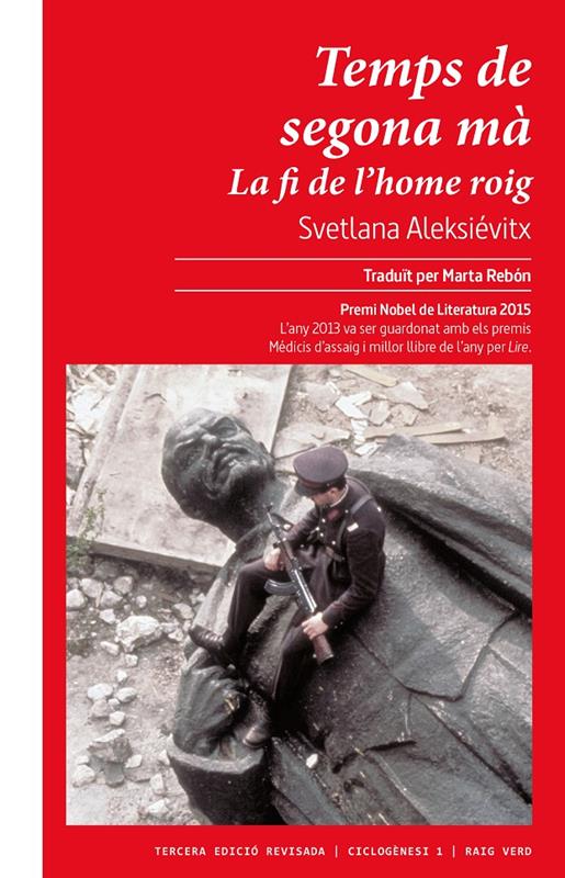 Temps de segona mà: La fi de l'home roig és una obra que parla dels últims vint anys de la història de Rússia i de com el final del règim soviètic ha afectat les persones que creien fermament que aquest règim era l'única forma ètica de vida. Des d'un moment inicial de confusió, amb les promeses de capitalisme de Gorbatxov (que per a la majoria no era res positiu, sinó el mal contra el qual havien lluitat tota la seva vida), fins a arribar al moment actual, en què molts es pregunten per què Rússia, amb la seva grandesa, no els proporciona més possibilitats d'una vida feliç i pròspera.