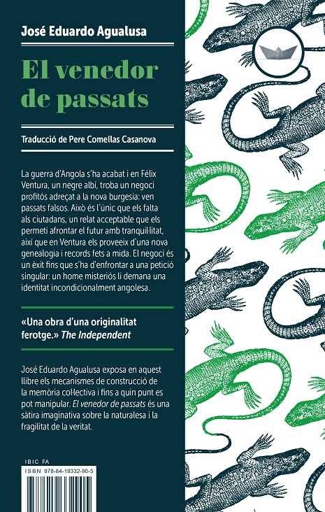 "La guerra d’Angola s’ha acabat i en Félix Ventura, un negre albí, troba un negoci profitós adreçat a la nova burgesia: ven passats falsos. Això és l’únic que els falta als ciutadans, un relat acceptable que els permeti afrontar el futur amb tranquil·litat, així que en Ventura els proveeix d’una nov...