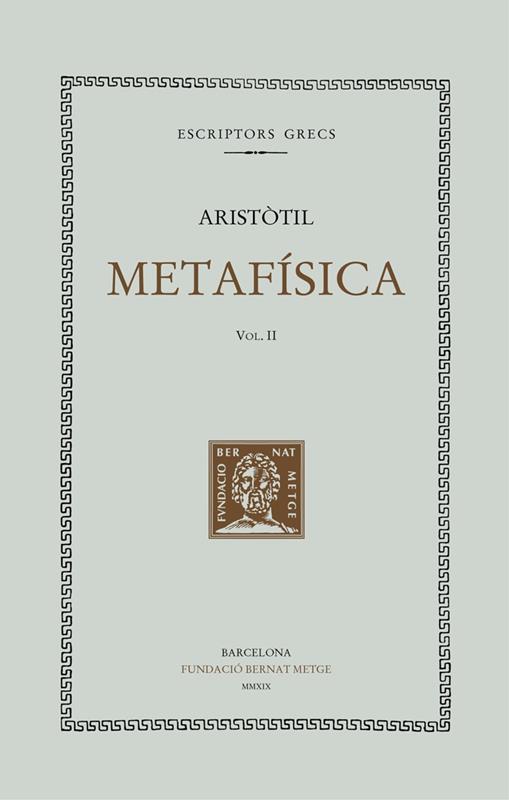La Fundació Bernat Metge continua l02019;edició i traducció de l02019;obra d02019;Aristòtil amb la publicació de la primera traducció al català d02019;un dels tractats filosòfics més influents del pensament occidental, la Metafísica, en què, més enllà de tractar diferents tipus de causalitat, forma i matèria, o l02019;existència d02019;objectes matemàtics, s02019;ocupa principalment sobre l02019;ésser com a ésser, és a dir de l02019;ésser en la mesura en què és. L02019;obra ofereix un acostament entre la teoria platònica de les formes 02014;que Aristòtil havia conegut a l02019;Acadèmia d02019;Atenes02014; i la visió del món que es pot obtenir a partir de l02019;observació i del sentit comú, i ho fa expandint l02019;argument del tercer home i reduint tot ésser al món físic, fins i tot les entitats eternes i abstractes, que no tenen una existència paral·lela.